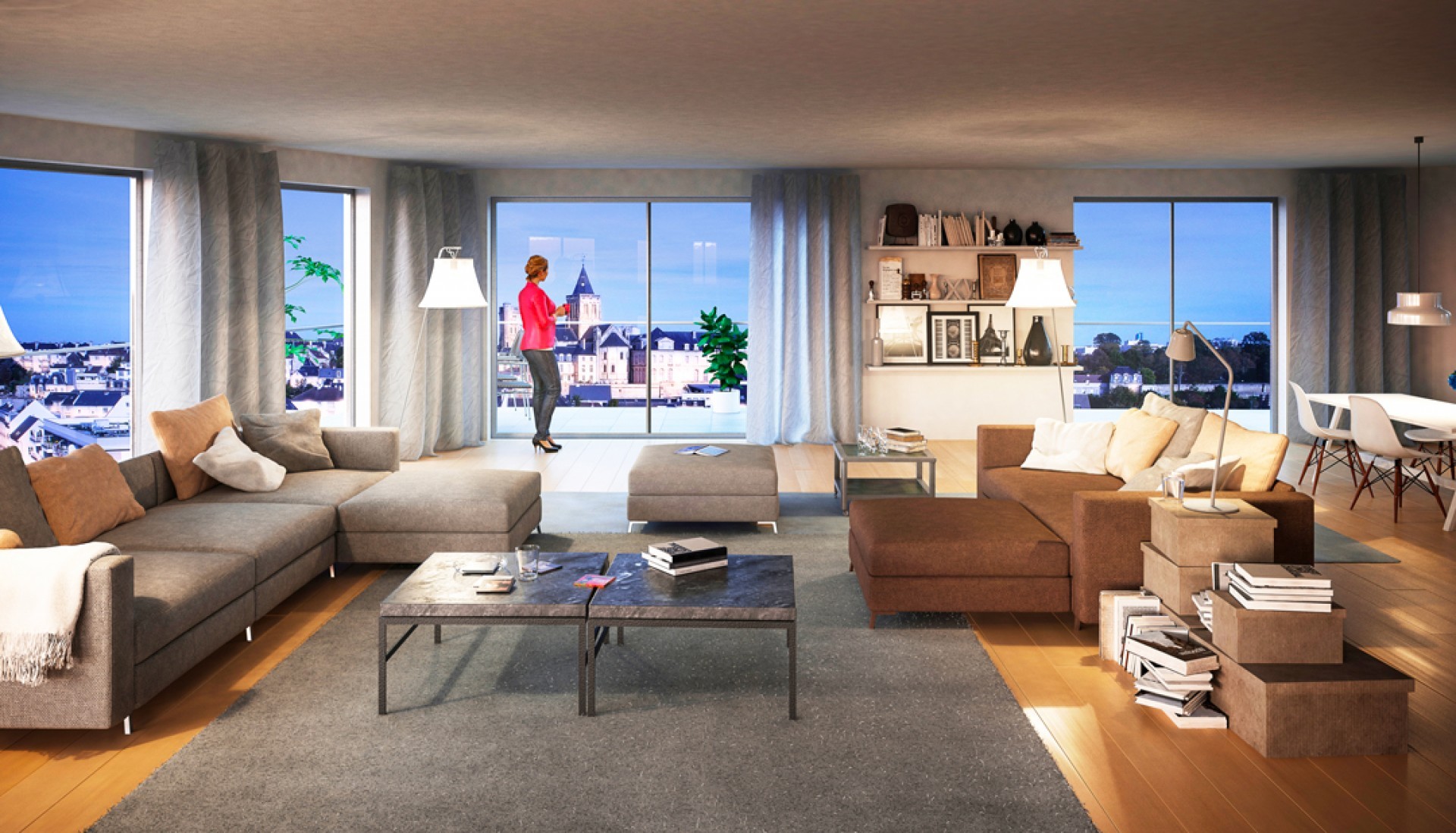 Déclinés du studio au 5 pièces, les appartements se prolongent pour la plupart sur des balcons et terrasses. Ces espaces extérieurs donnent accès à des vues inédites sur la ville ou sur le jardin intérieur.