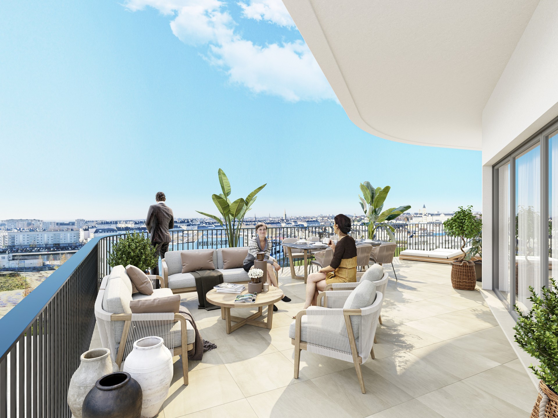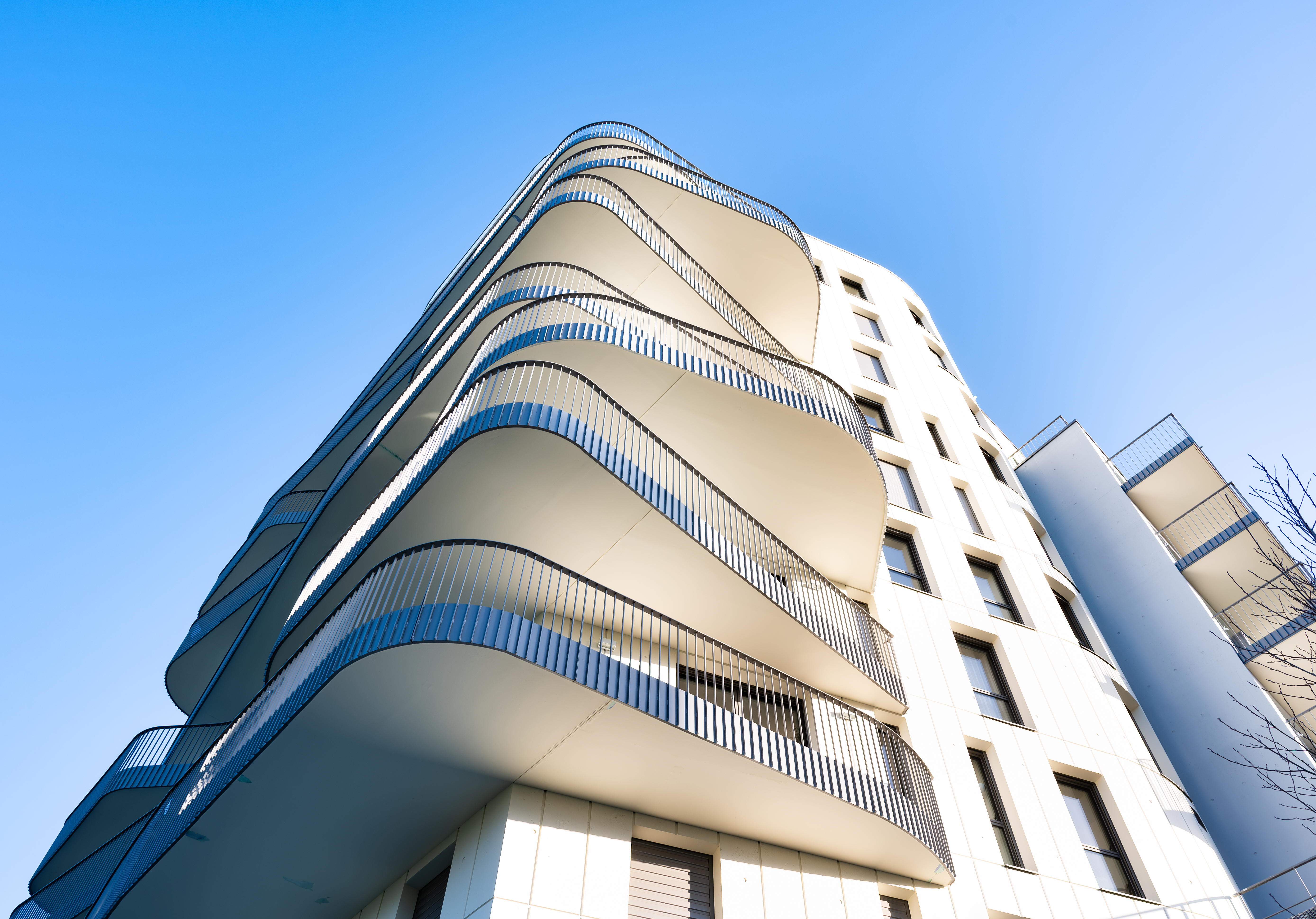 La structure des balcons courbes, design et innovante permet de respecter l'intimité des résidents tout en profitant des vues dégagées sur la ville de Caen.